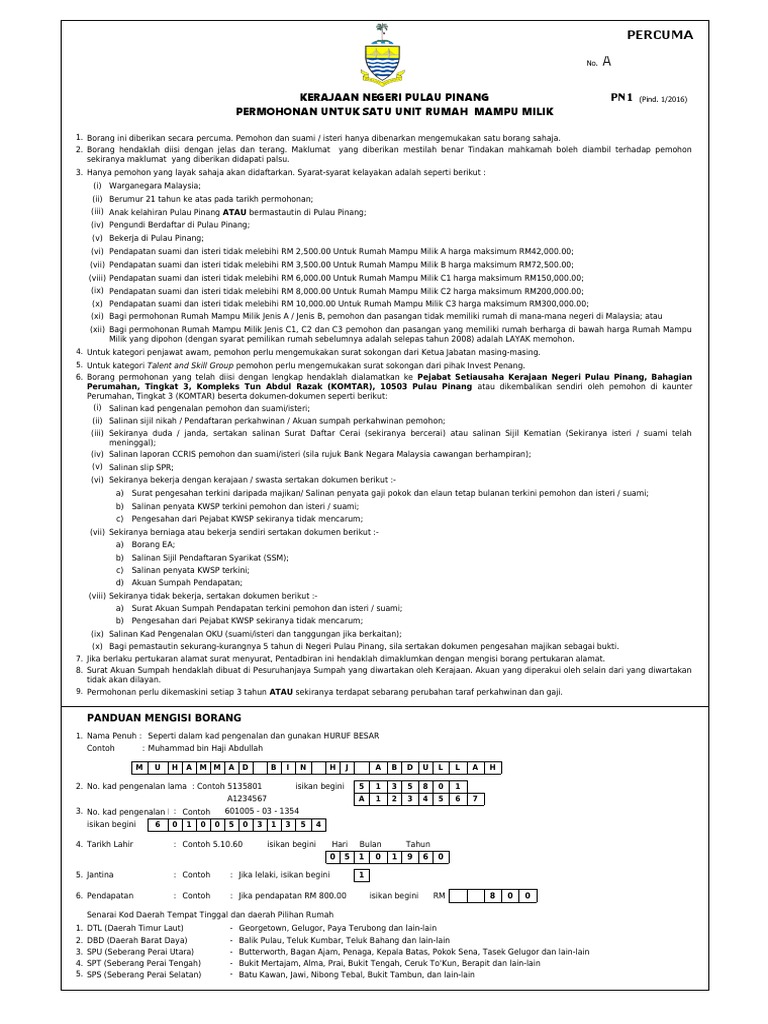 Borang Permohonan Rumah Mampu Milik Pulau Pinang Online Rungus My