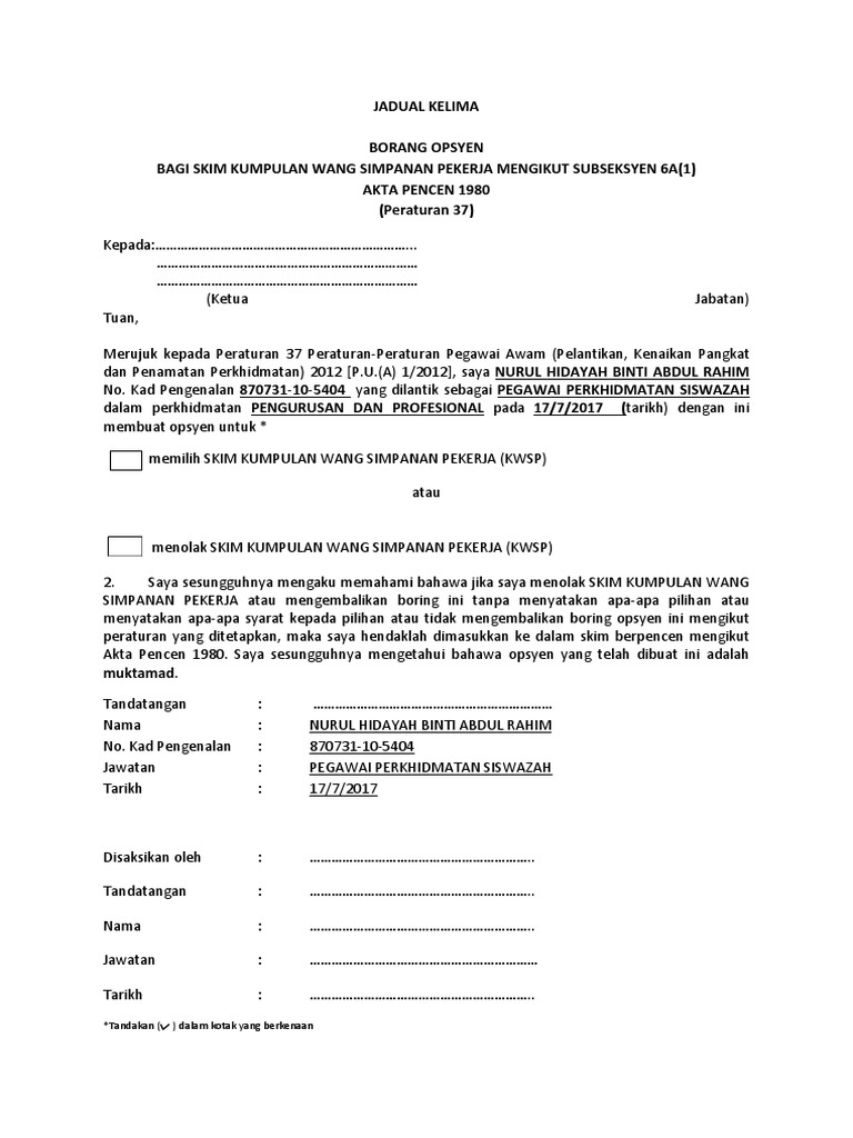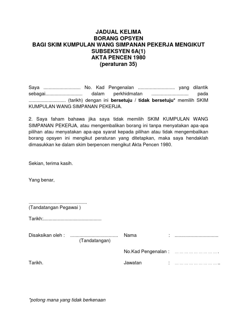 Borang Opsyen Pencen Kwsp Doc Document